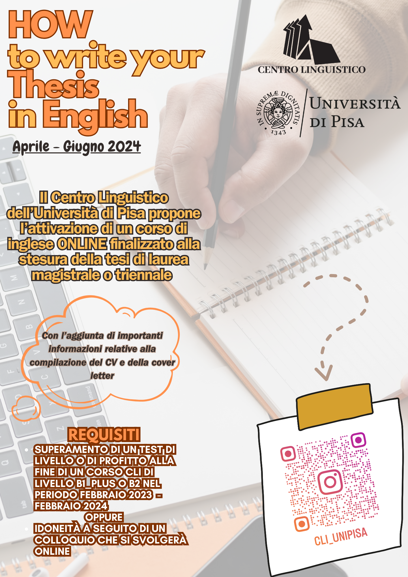 Il CLI ritiene che questo corso possa essere una preziosa opportunità per i laureandi interessati a scrivere la propria tesi in inglese.